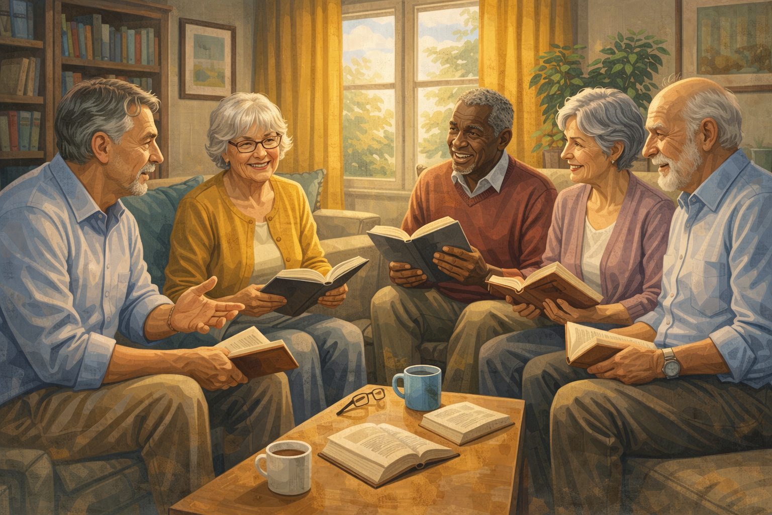 | DESCRIPCION: Incentivar las cualidades cognitivas en adultos mayores FUNCIONES: Un grupo de personas que leen partes de una obra literaria en su domicilio y se reúnen para comentar y debatir el material |